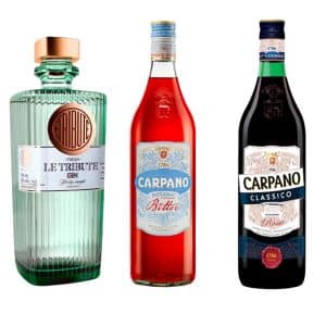 PACK NEGRONI PREMIUM .- 1 CARPANO CLASSICO 1LT + 1 CARPANO BITTER 1 LT + 1 GIN LE TRIBUTE 70 ML